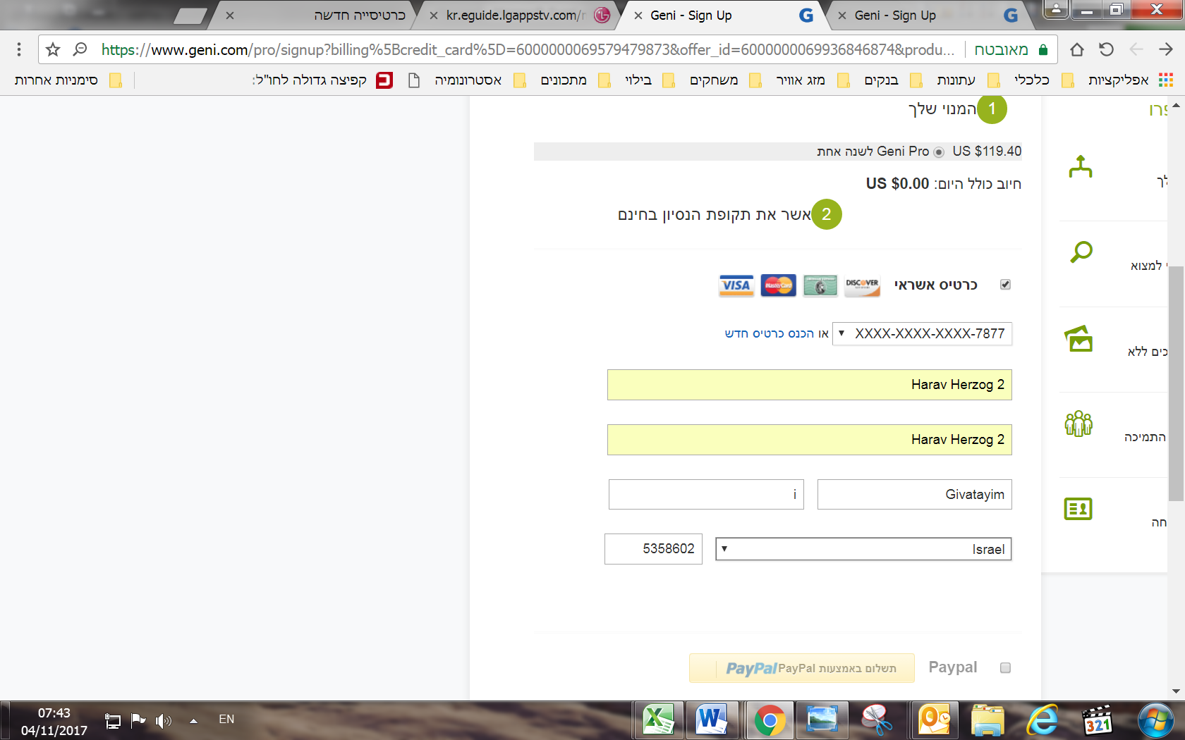 0 Can't subscribe to geni pro - Address wrong Guido (Gidon) Loew (Lev( November 04, 2017 05:53 None Follow I can't subscribe to geni pro. The system claims that I didn't put the full address. Gidon Lev gidonl@012.net.il