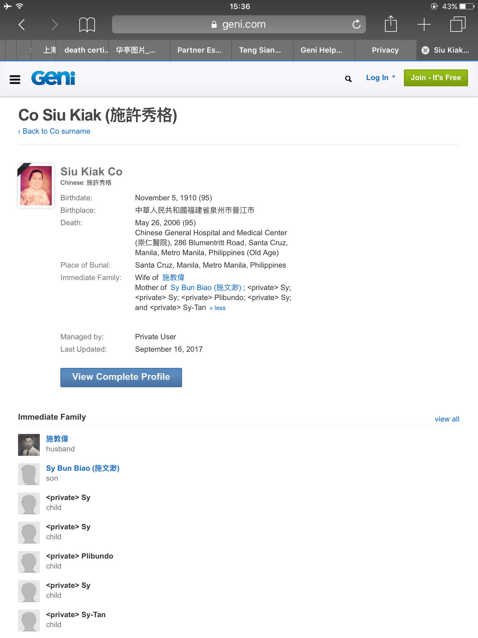 I need your help. I noticed that the place name of my deceased relatives' public profiles are hidden when I googled them. For example, my great-grandmother's place of burial is at Manila Chinese Cemetery with the address, Santa Cruz, Manila, Metro Manila, Philippines. As you can notice in the attached photo at the place of burial, it only says the address (Santa Cruz, Manila, Metro Mnaila, Philippines), the place name (Manila Chinese Cemetery) is not shown. How do I make it shown? Thanks.