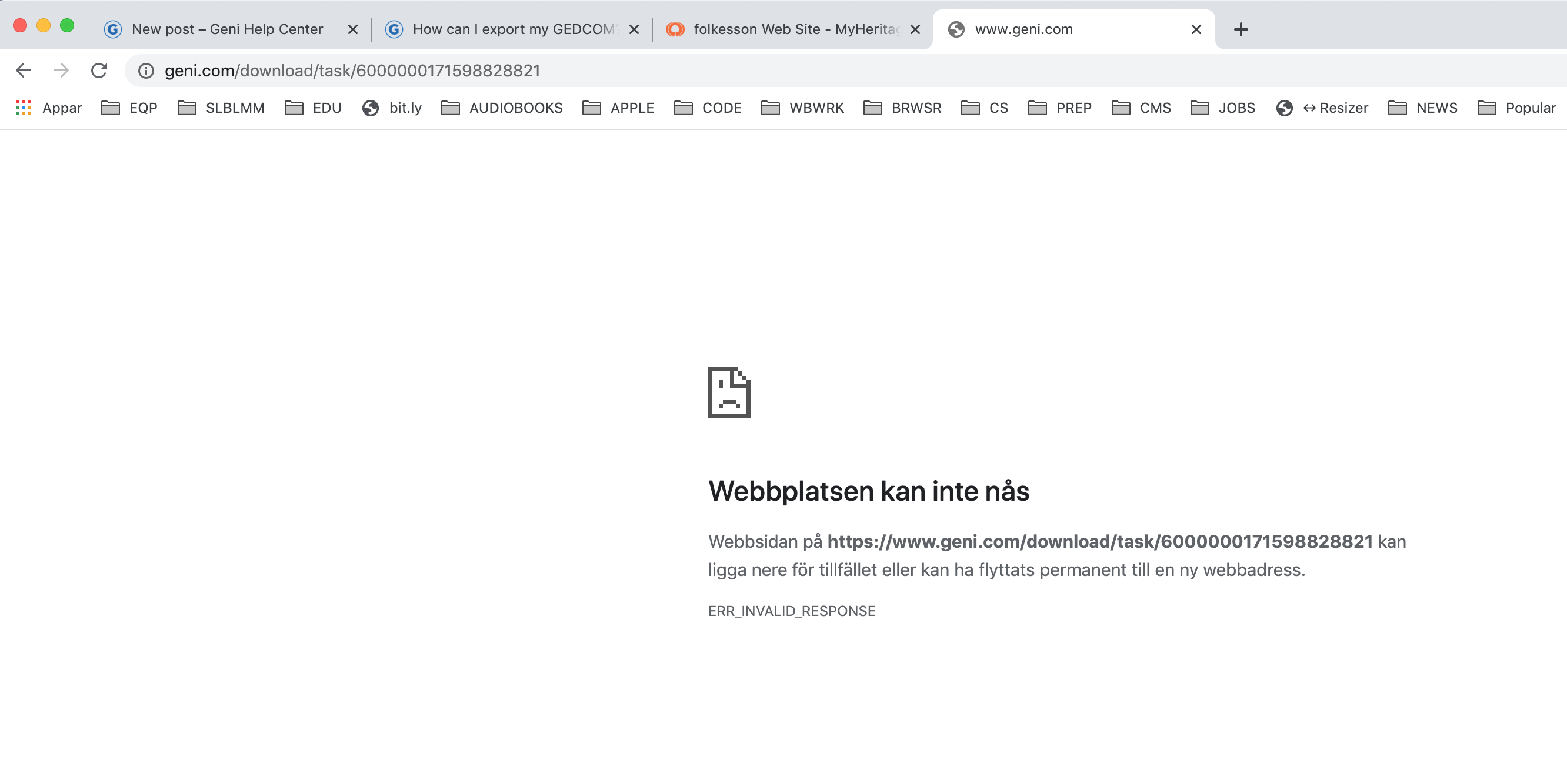 Unable to download gedcom file. tried 3 times in 2 different browsers