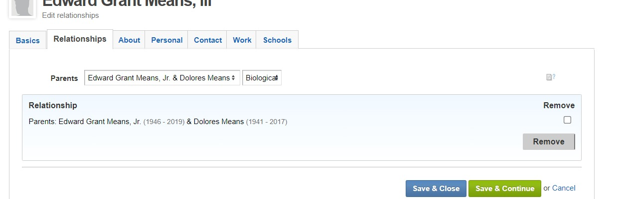 How can I move my half brother from my mother's profile page without deleting him? We have the same father but not the same mother. He is attached to our father but I do not know why he's attached to my mother. Please help...