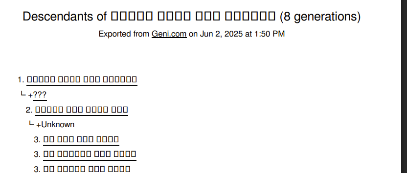 When exporting to pdf an Ancestor or Descendants Report that's in a different language (i.e. Amharic), the texts in the pdf are all squares / boxes. Is there a way to fix this?
