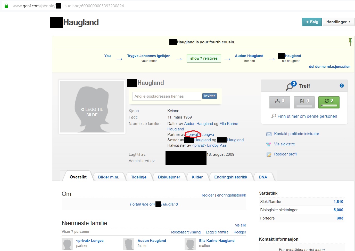 Now, both profiles have become "private". I have now also tried to change the account settings of my family group to third cousins and back again to fourth cousins. This did not help.