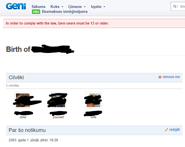Geni requires 15 year old user to be at least 13 years old