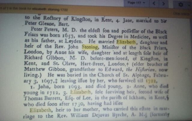 It is necessary to report an important event . I found these two Books there is written about Peter Peter - De La Pierre born 1657 married with Elizabeth Stoning 1692 at St. Gilles England . Elizabeth were born 1655-1722 was called Engelandten , means born as English. Here Parents was John Stoning married Ann born Gibbon daugther of Sir. Richard Gibbon . Dorothy was maybe only Ann´s sister instead and not mother to Elizabeth as seen before.