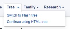 Geni Support Team We need to know which version so we can diagnose the issue. At the top of the page, click on the small triangle and let us know which version of the tree you are using. See the screenshot below for an example.