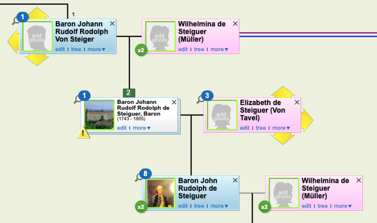 I made a mistake of merging two people in my family tree. In my family tree, I merged two people who were way different. In the picture below there should be only one Wilhelmina Müller and that should be the one at the bottom of the picture who is married to the guy with the picture. Also, the guy with the picture has two copies as well. Can you guys fix this?