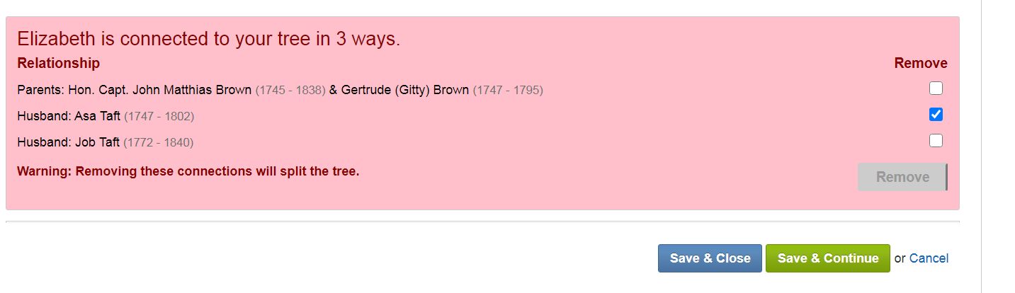 Elizabeth is my ancestor, she married Job Taft, not Asa Taft.