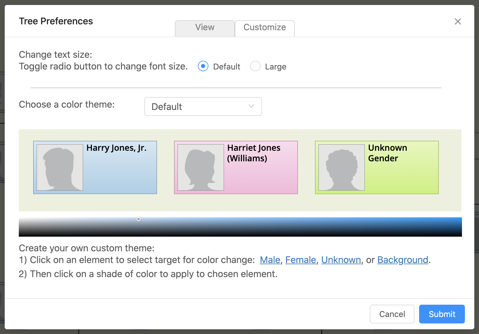 Then click the 'Customize' tab to switch back to the smaller, default font size in the tree.