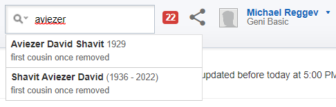 At my brother's request, I tried searching for our first cousin once removed, Avi - and found two connections.